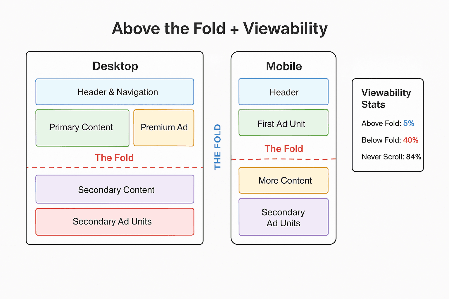 From an advertiser perspective, this makes above-fold inventory more valuable and typically more expensive. Many advertisers specifically request or even require that their ads appear above the fold, and they're willing to pay premium CPMs for the privilege.